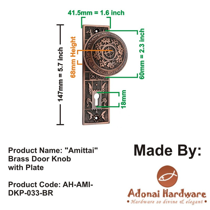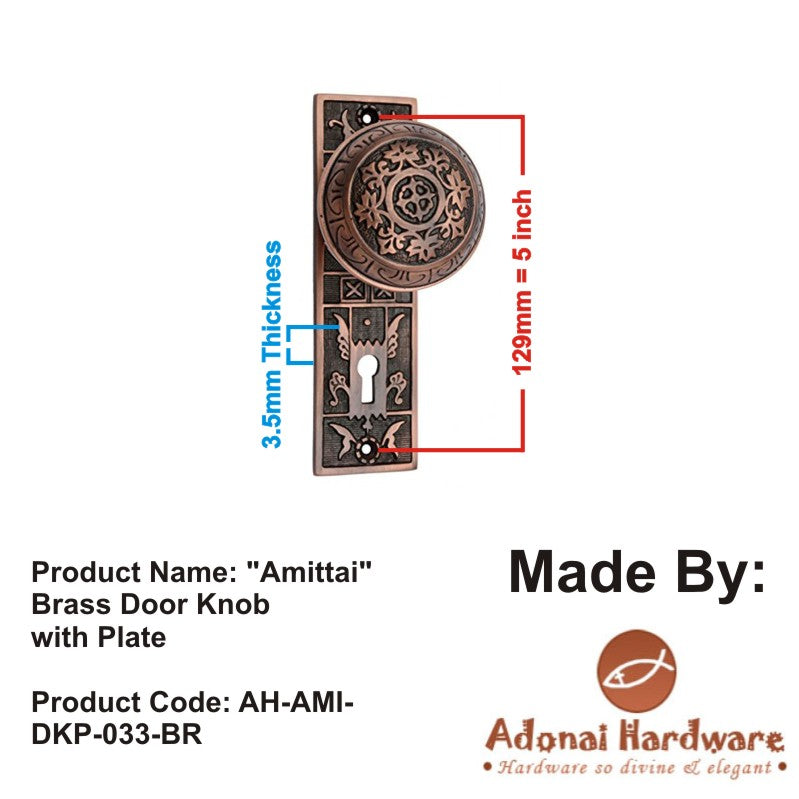"Amittai" Brass Door Knob with Plate