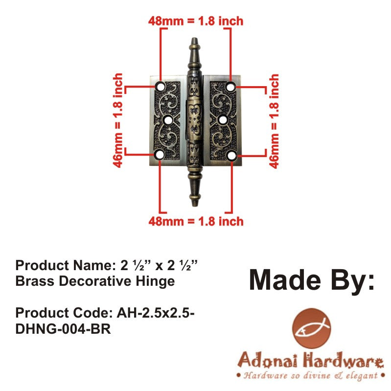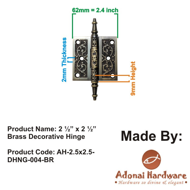 2 1/2" x 2 1/2" Brass Decorative Hinge