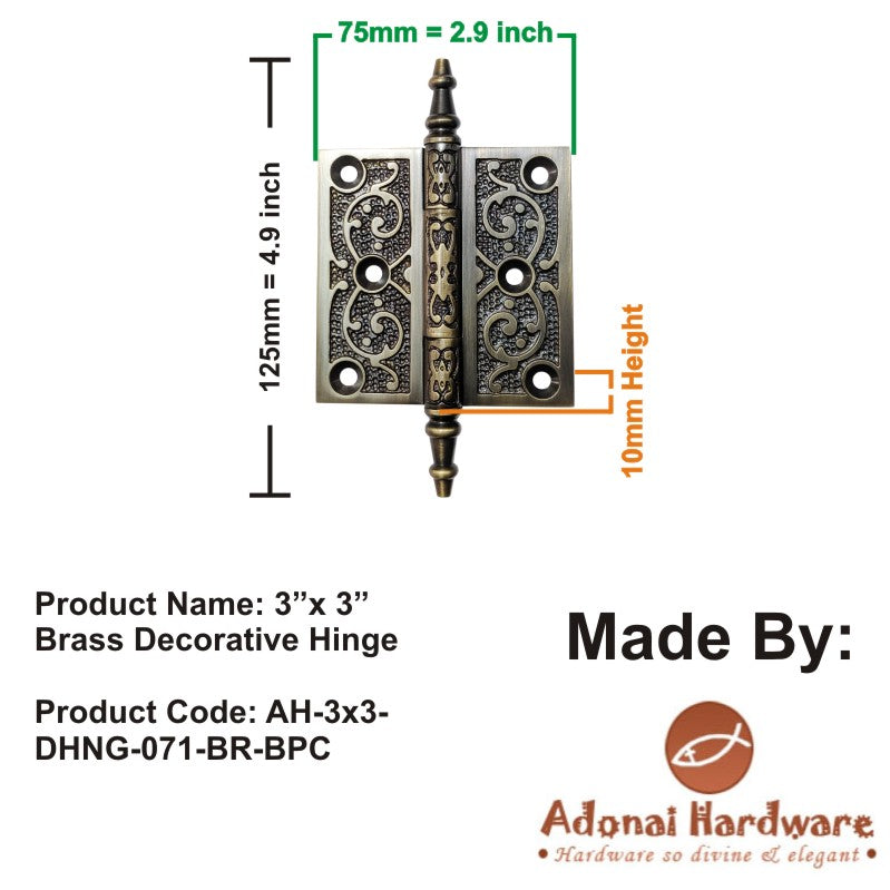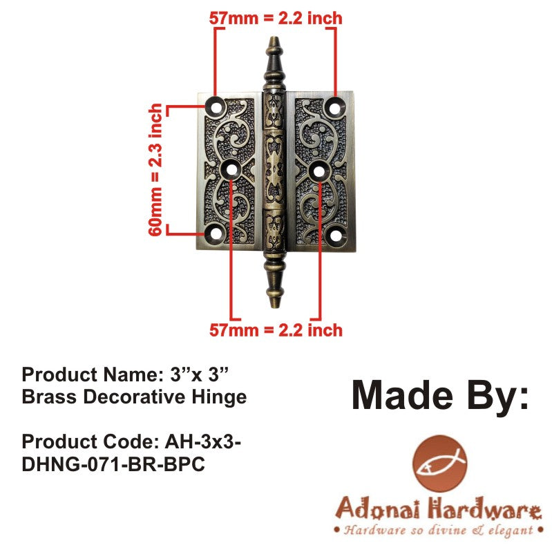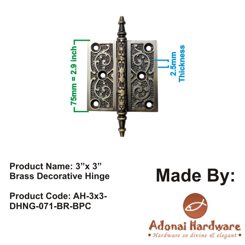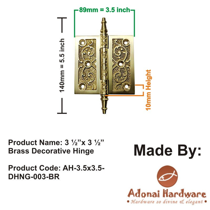 3 1/2" x 3 1/2" Brass Decorative Hinge
