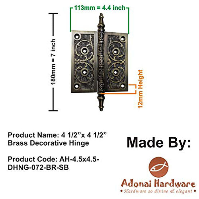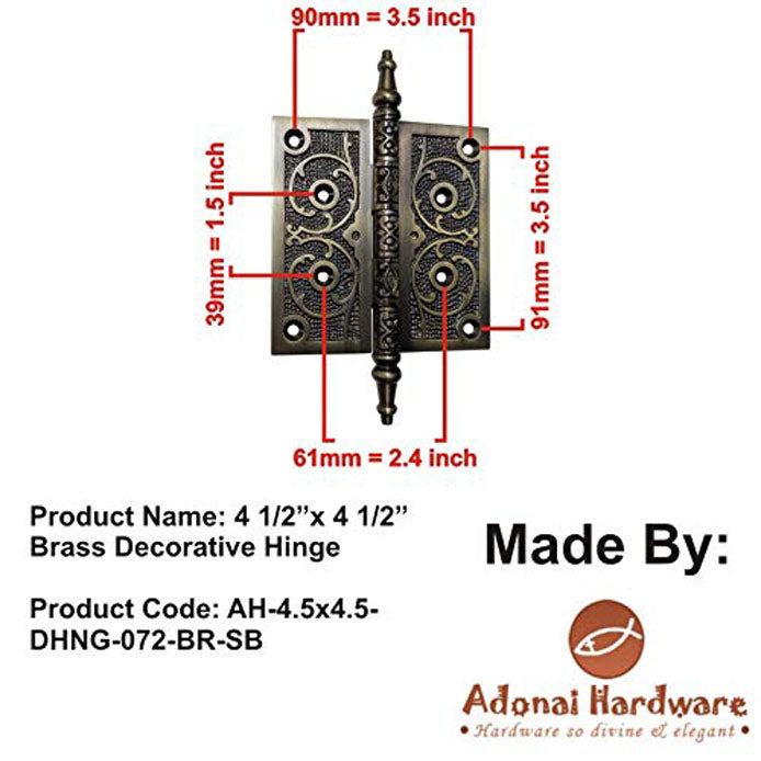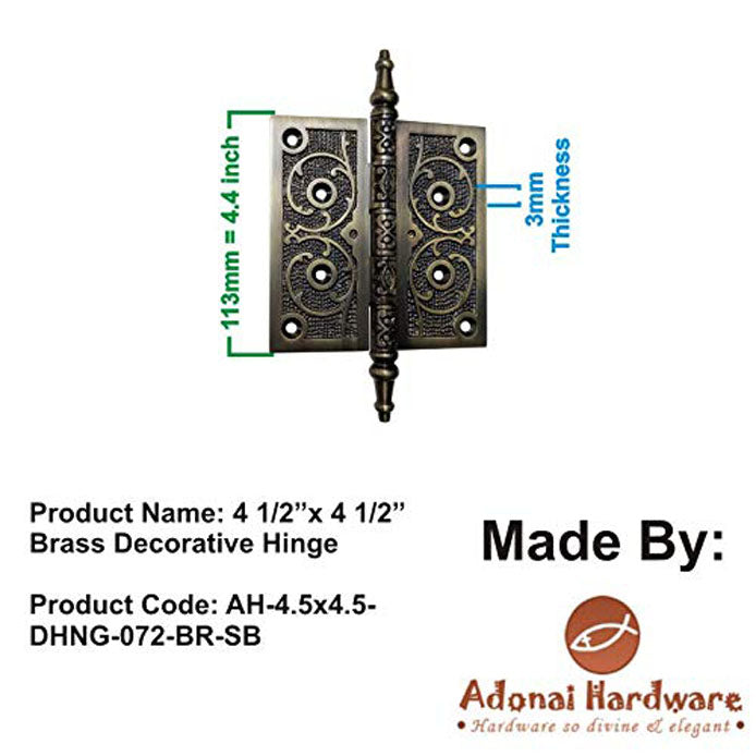 4 1/2" x 4 1/2" Brass Decorative Hinge