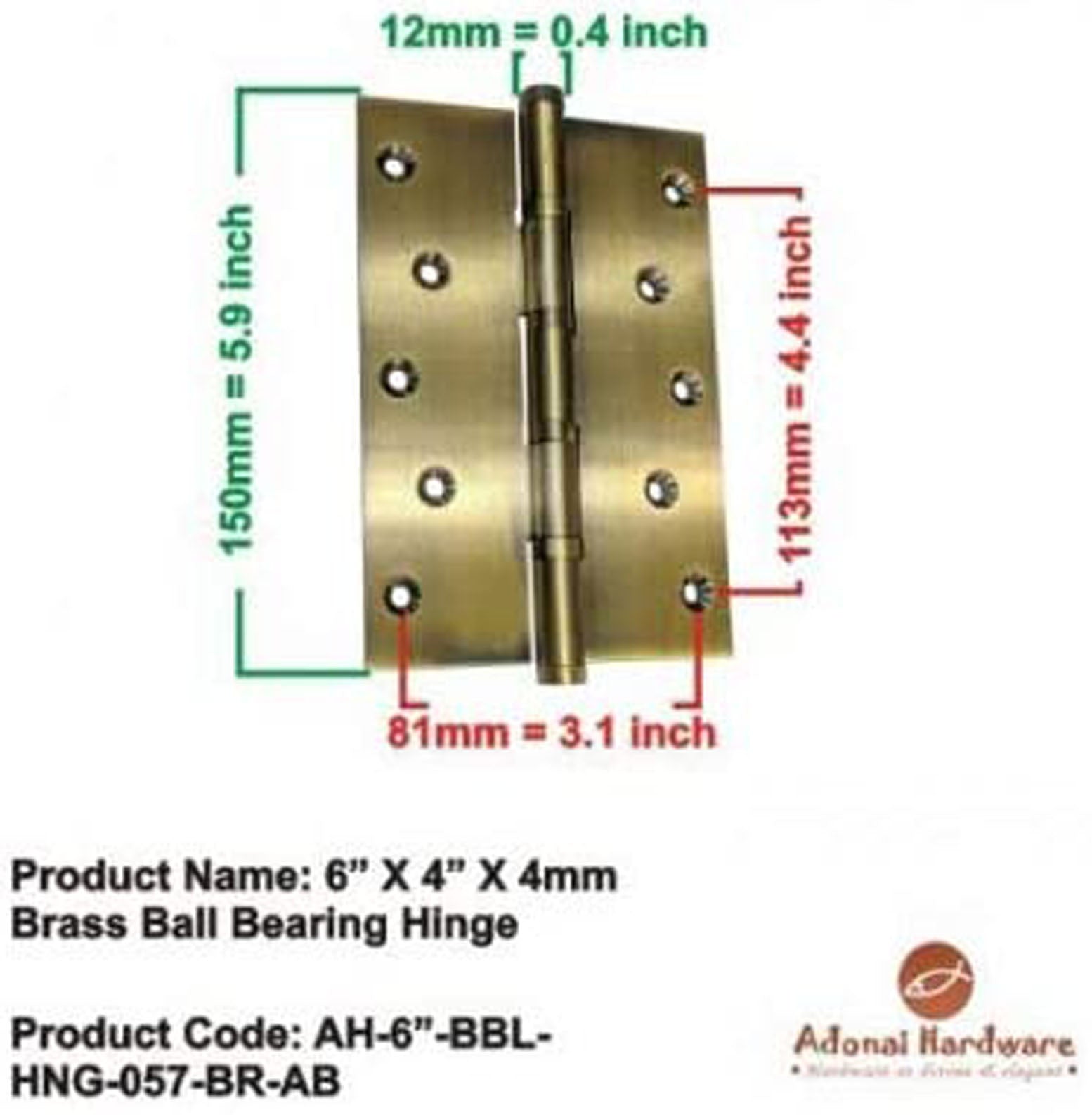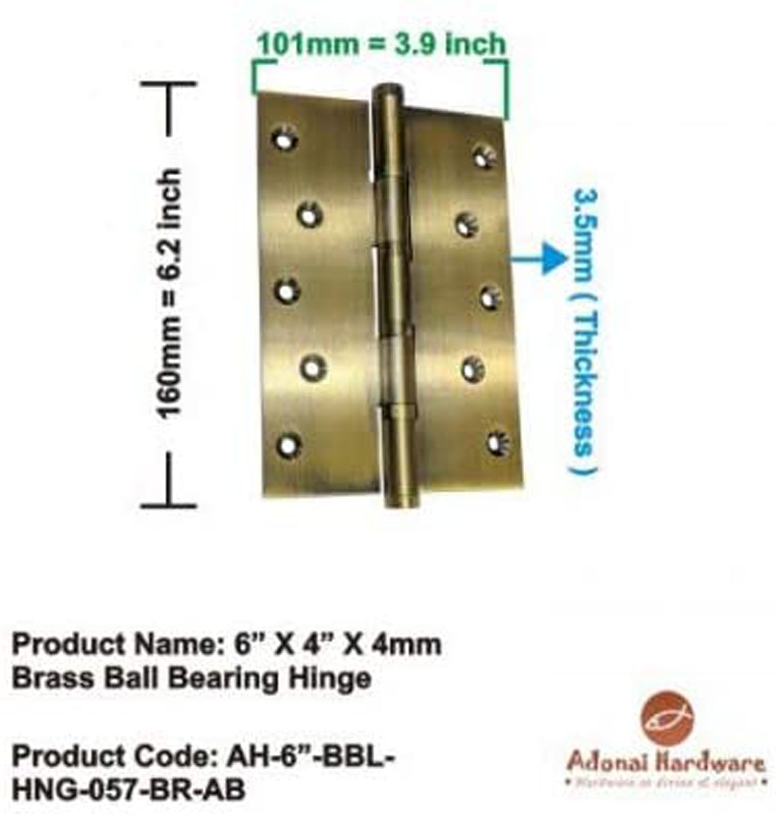 6" x 4" x 4mm Brass Ball Bearing Hinge