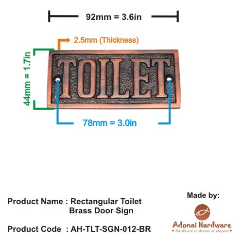 Rectangular Toilet Brass Door Sign