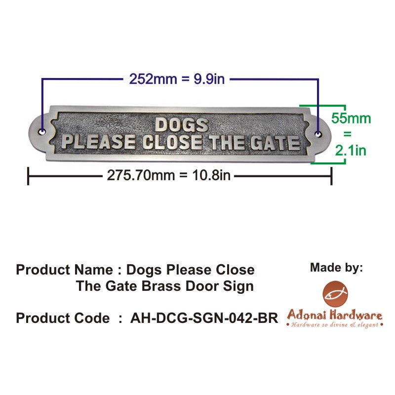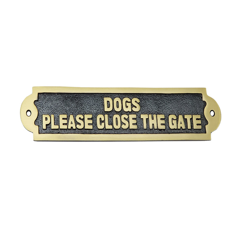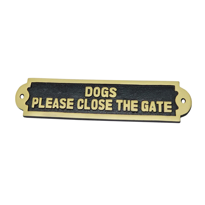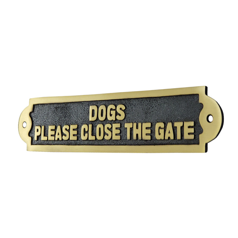 Dogs Close The Gate Brass Door Sign