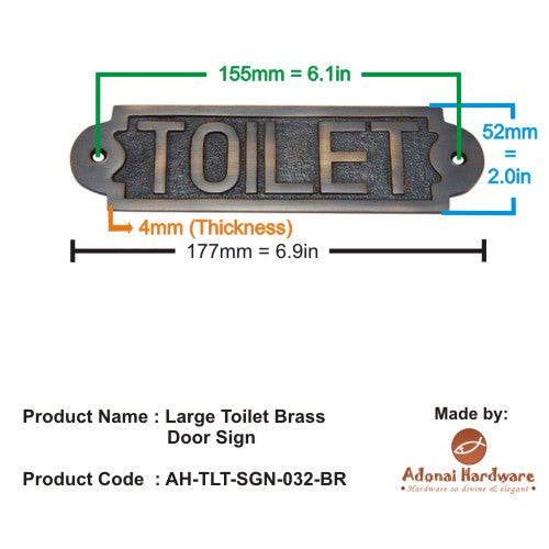 Large Toilet Brass Door Sign