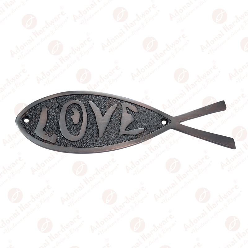 "Love" Brass Fish Door Sign