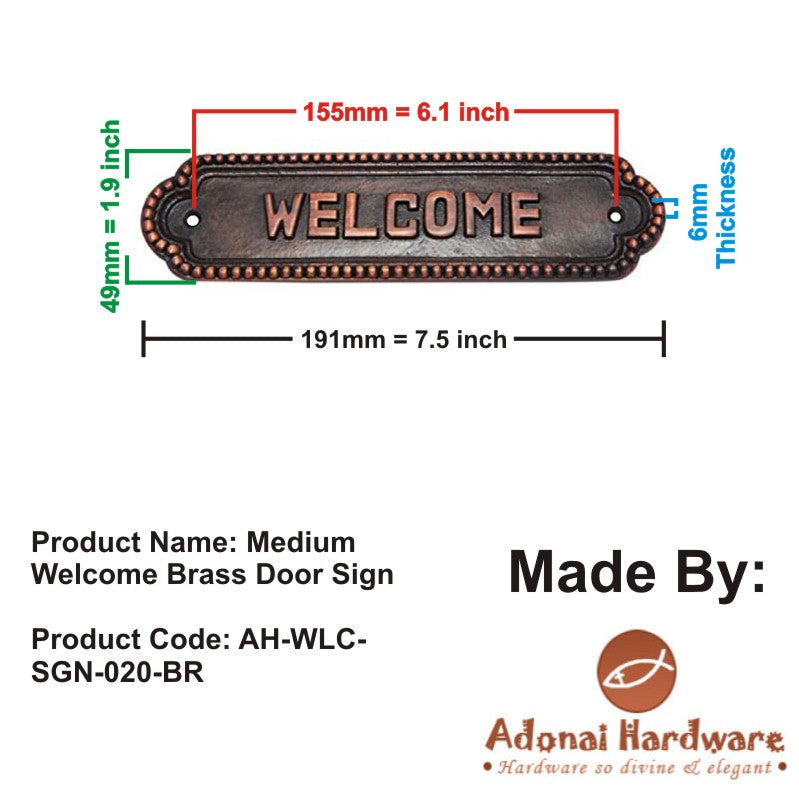 Medium Welcome Brass Door Sign