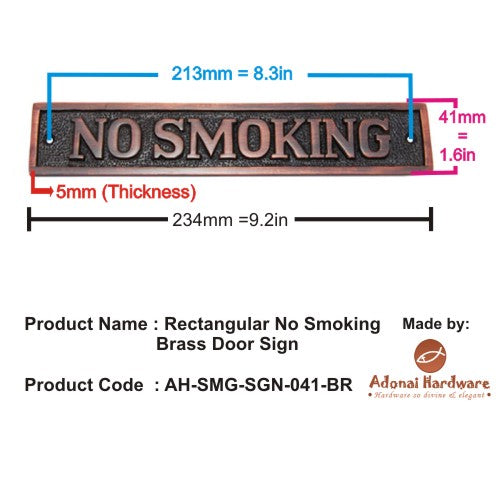 Rectangular No Smoking Brass Door Sign