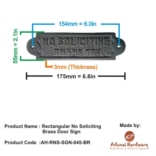 Rectangular No Soliciting Brass Door Sign