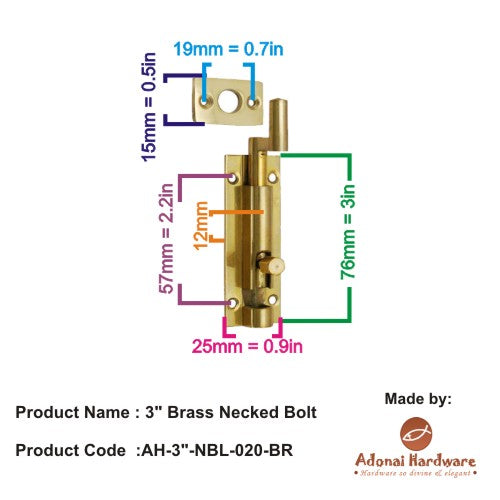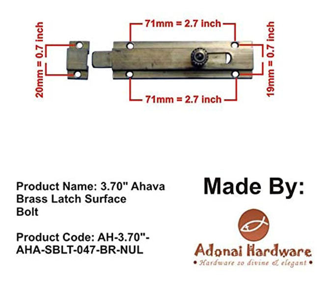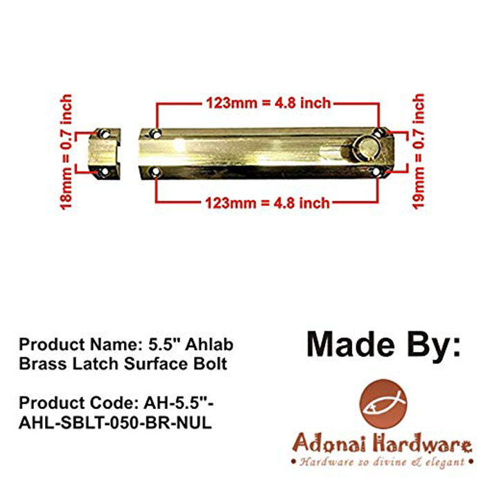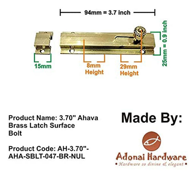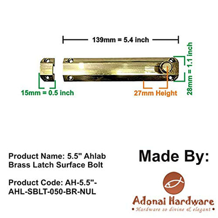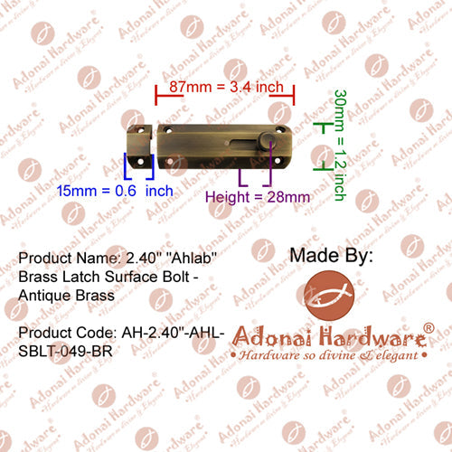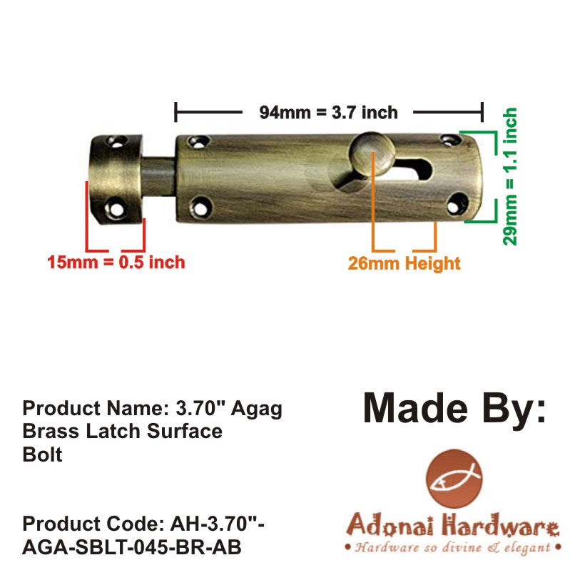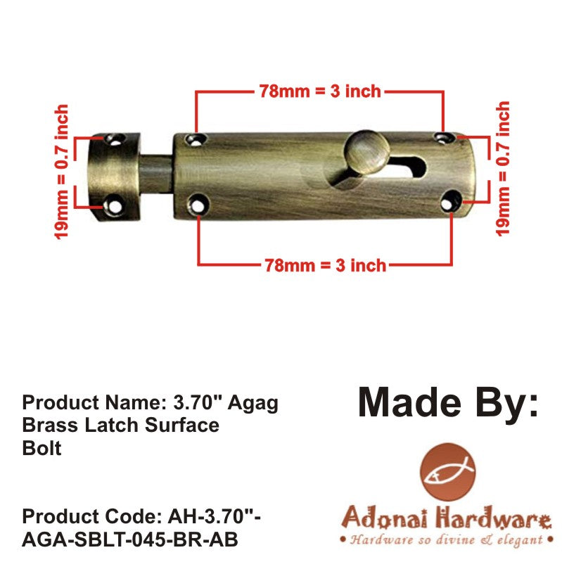 3.42 Inch "Ahlab" Brass Latch Surface Bolt