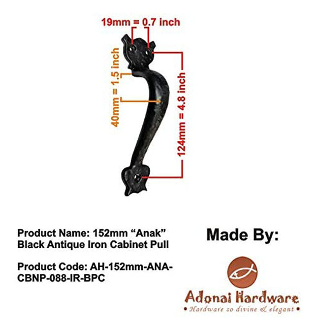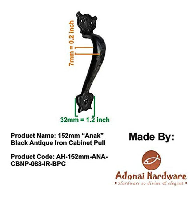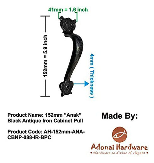 185mm "Cana" Black Antique Iron Cabinet And Door Pull