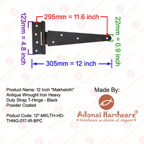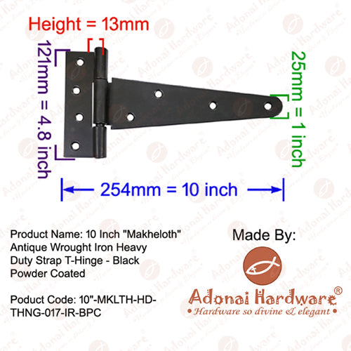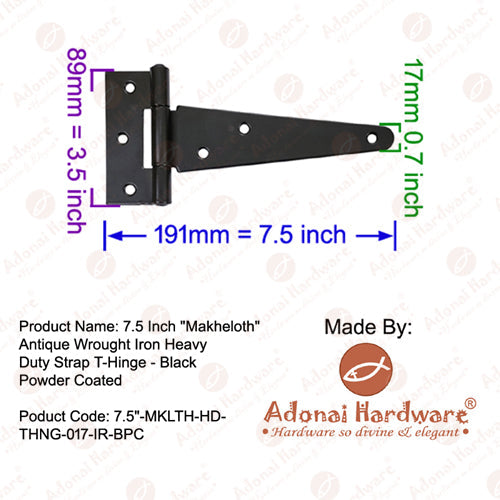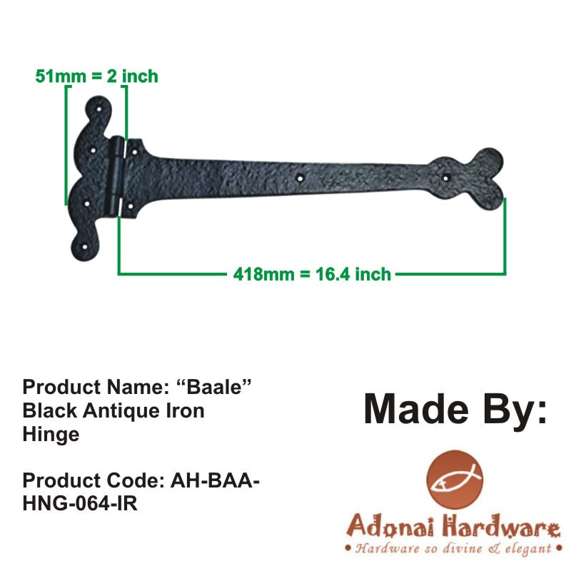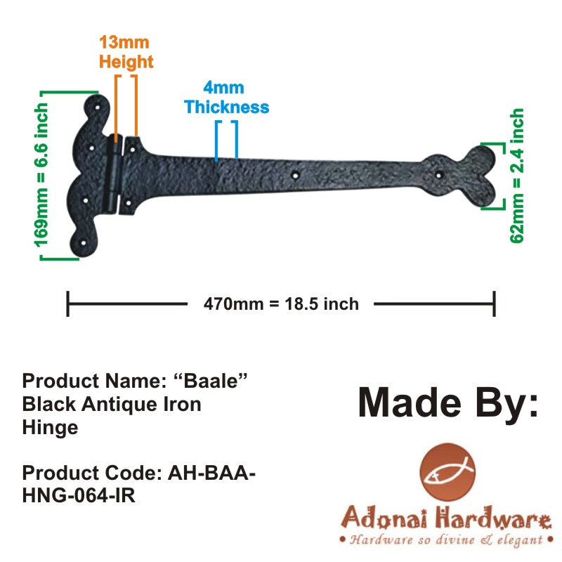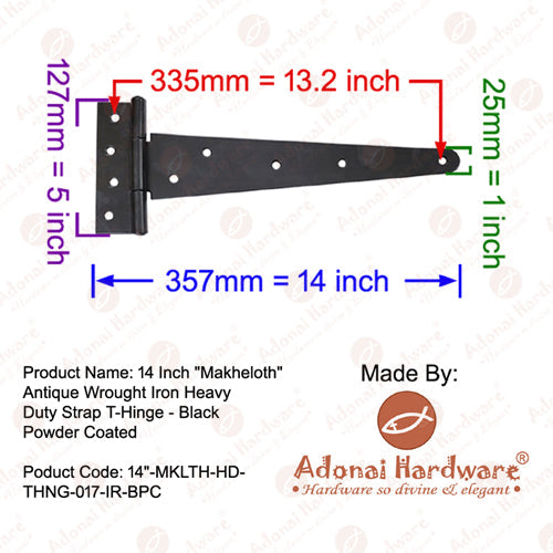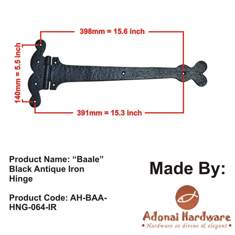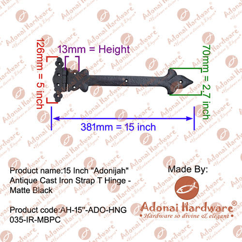 15 Inch Adonijah Antique Cast Iron Strap T Hinge