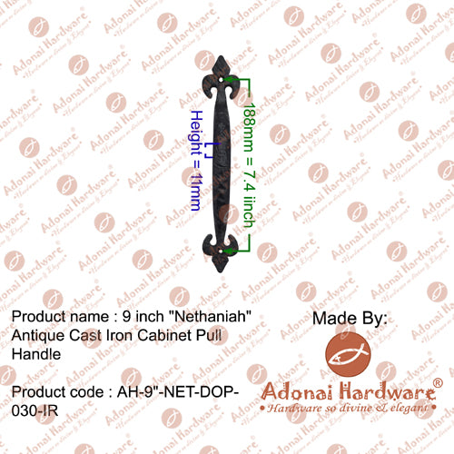 9 Inch "Nethaniah" Antique Cast Iron Door and Cabinet Pull