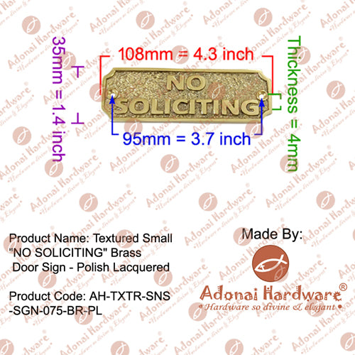 Buy Textured Small "NO SOLICITING" Brass Door Sign-Premium Harware Products Online - Adonai Hardware